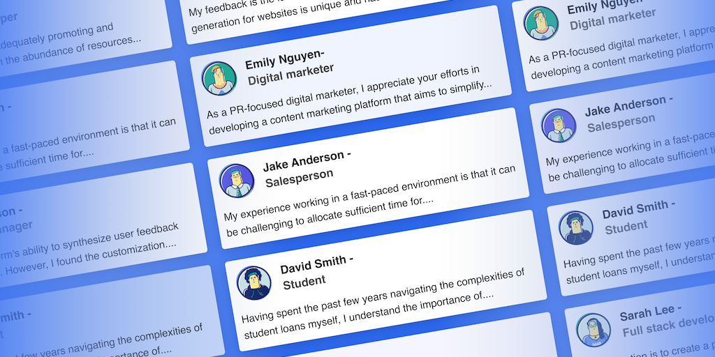 Get instant feedback from our AI characters for free. Whether you're looking for general advice, specific feedback or suggestions. Each character will share their personal experiences, provide suggest