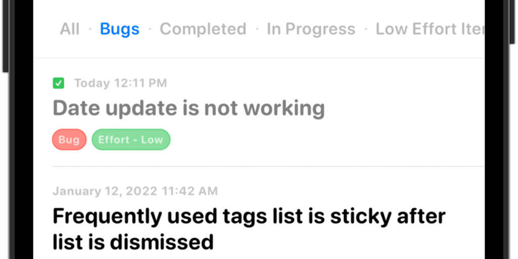 Create lists at the level of granularity you need. Just want to track some tags? You can turn off other UI features at any time without losing any data. This app was originally targeted at meal tracki