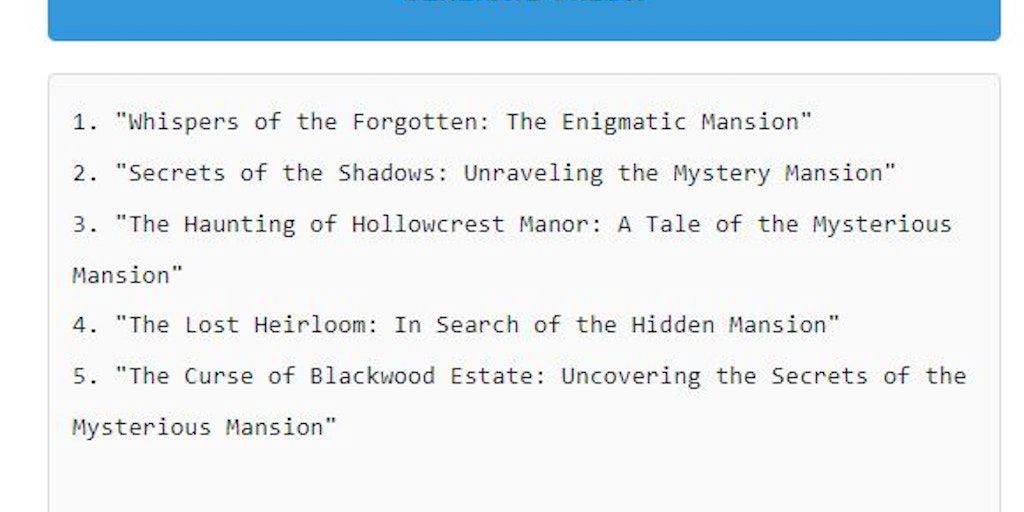 The Story Titles Generator is a tool that generates attractive and interesting titles for various types of written or storytelling content.
