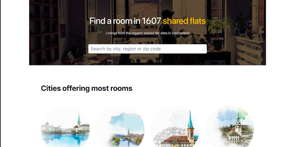 Hi, It's me, Philipp Keller 👋 I aggregated the 4 biggest Swiss shared flat portals into one site. And offer the best search capabilities (including text extracting). Available on Web, Android and iOS