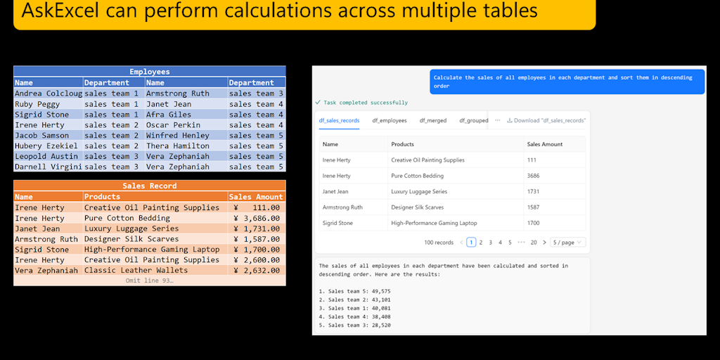 From the hassle of data organization to data analysis, AskExcel will be your best AI assistant. You can simply engage in a conversation with it to get help with anything, quickly and conveniently!
