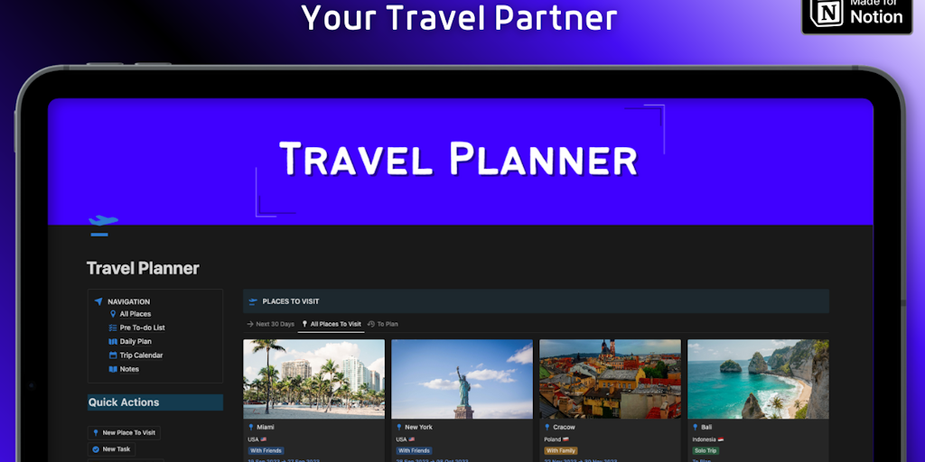 Your Travel Partner. Store & organize places you visited, want to visit, plan your trips day by day, see it on the calendar & so much more...