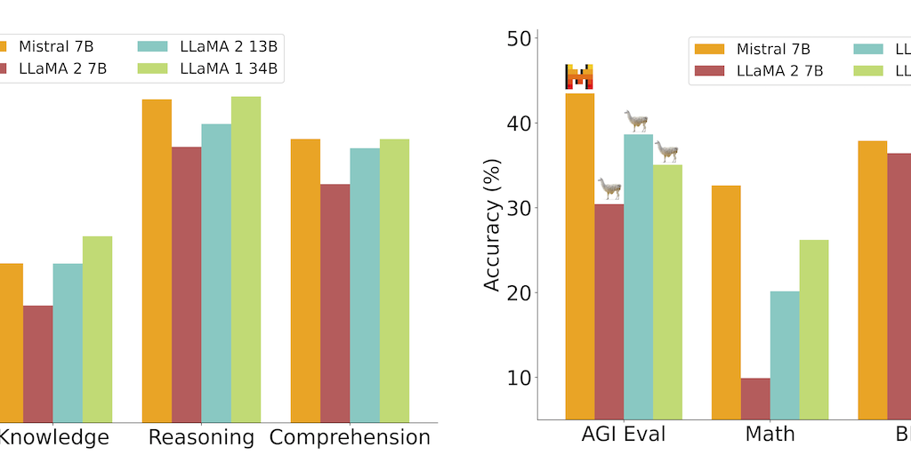 Mistral 7B is a 7.3B parameter model that: • Outperforms Llama 2 13B on all benchmarks • Outperforms Llama 1 34B on many benchmarks • Approaches CodeLlama 7B performance on code, while remaining good