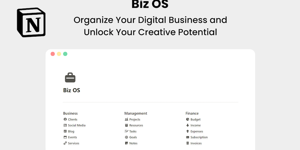 Biz OS is a powerful, versatile template designed to streamline and centralize your freelance business operations. Whether you're just starting or have already started building your business, this tem