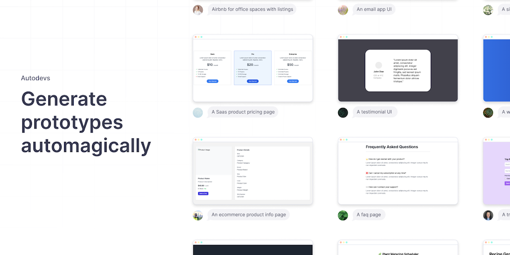 Autodevs are AI powered devs that generate simple prototypes automagically. Building something more complex? Get an instant (human) dev team to build the rest fast.