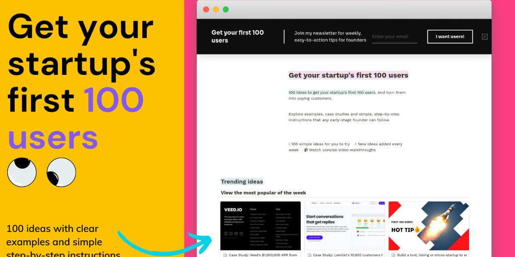 Get your startup's first 100 users. Actionable ideas, clear case studies, simple step by step instructions.