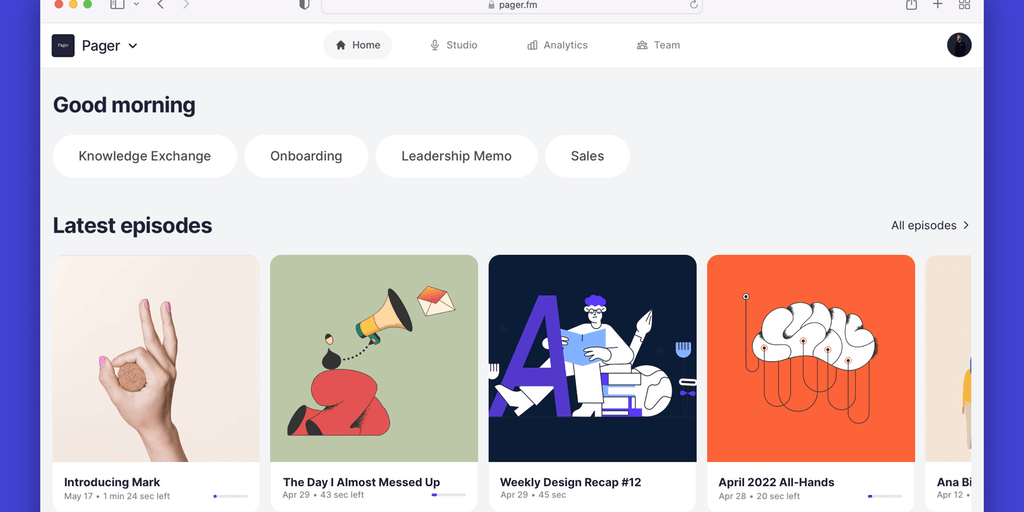 Pager is the private podcast platform for teams. Whether it's an onboarding series, leadership memo, employee interview, company update, or on-demand training, your stories deserve a podcast platform