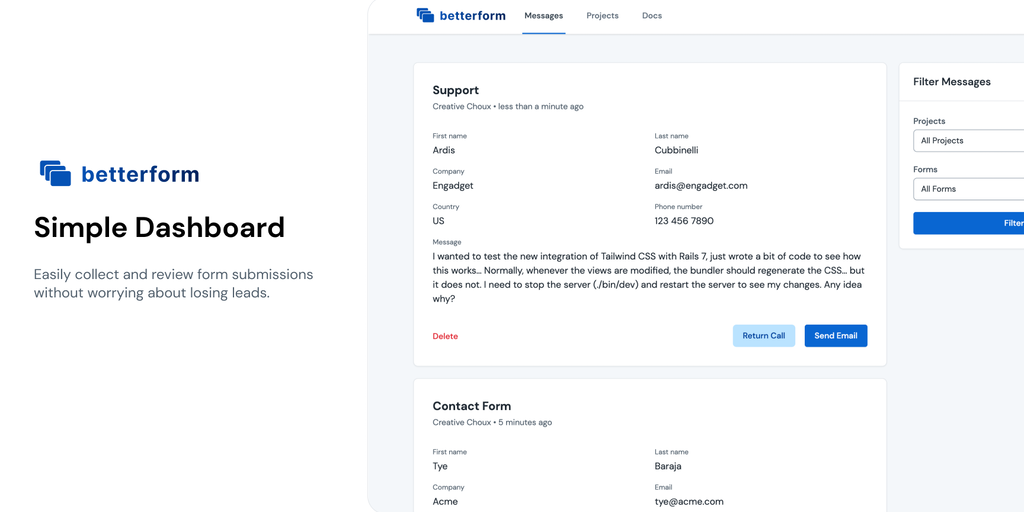Forms simply for everyone - betterform is simple and intuitive forms that just work anywhere. With a small footprint of only 1.2KB zipped, betterform will work and scale with even the most performance