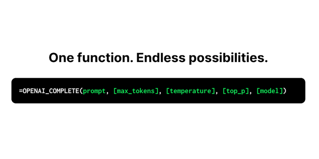 Generate content and answer questions about data in your spreadsheets with the same technology behind ChatGPT.