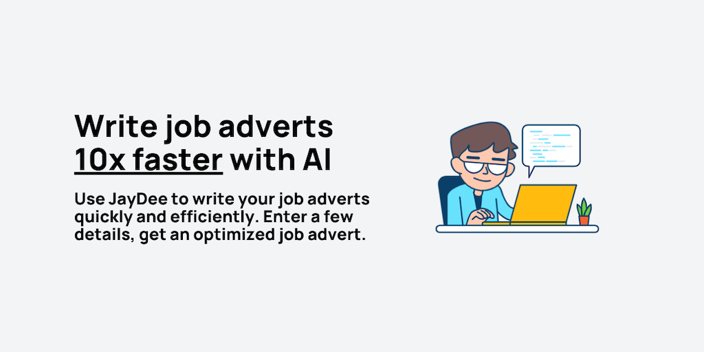 Save time and turbocharge your job adverts with JayDee AI. Provide a few details and JayDee will write you a complete and engaging job ad in moments. With one click, copy the ad to your job boards. Ge