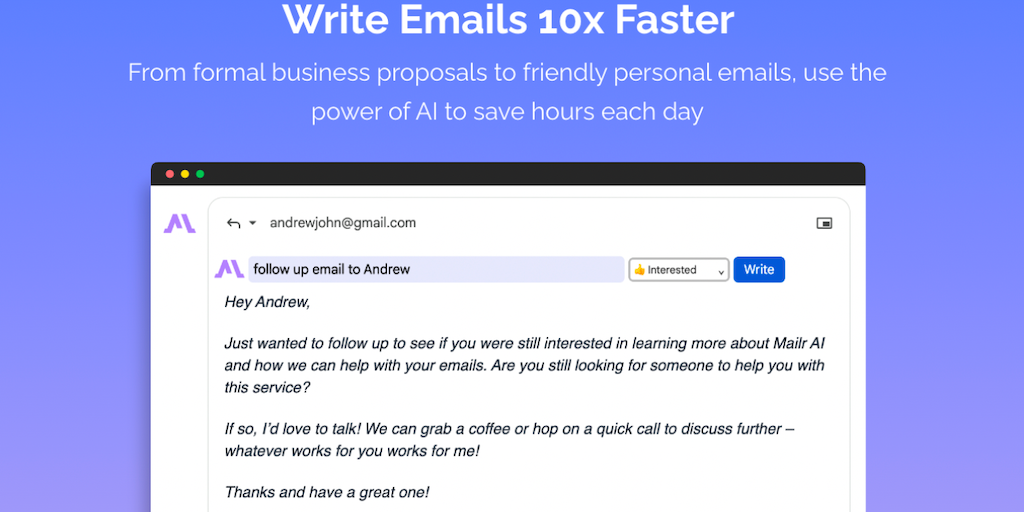 Mailr - AI Email Writer - Write and reply to emails using ChatGPT | Product Hunt