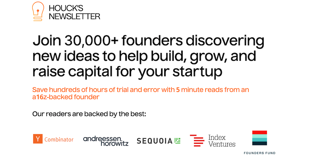 Houck's Newsletter is the leading weekly advice column for founders. My last startup raised our Series A from a16z, and now I'm sharing everything I know about building, growing, and raising capital f