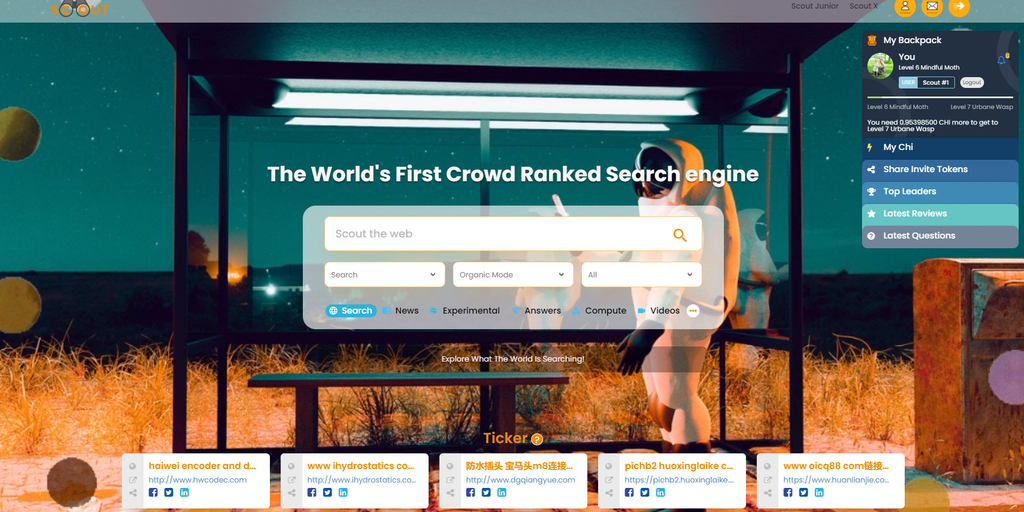 Scout is a next generation search engine experiment. We are launching a membership drive to bring our first Scouts onboard to our human-curated ad-free search.
