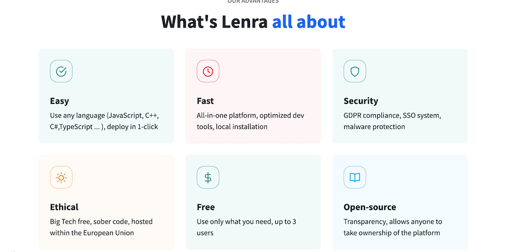 Enter the new matrix of app creation ! Lenra is an open source framework to create your app using any language, and deploy it without any Ops scale, built on ethical values.