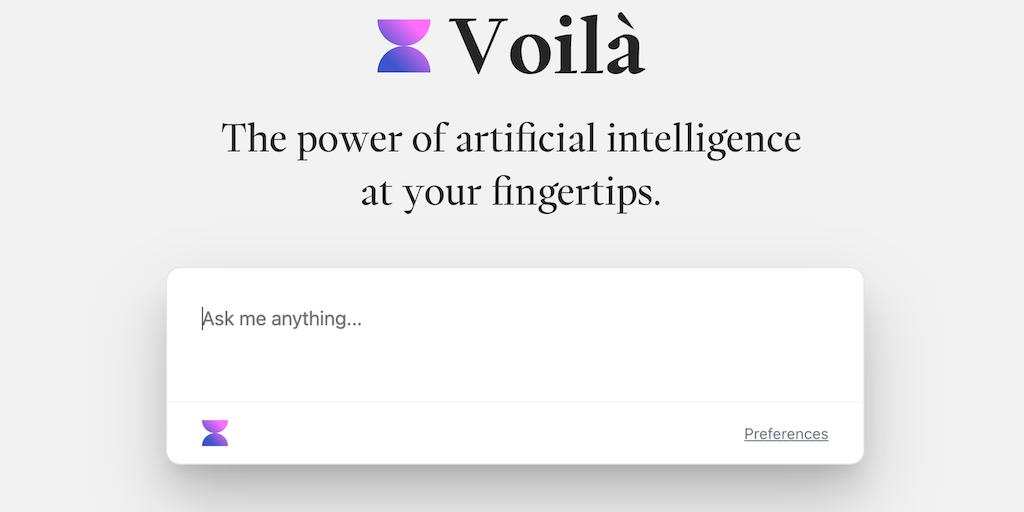 Voila brings the power of AI to help you with your everyday tasks. It's a simple, but powerful tool that can answer any question, look up any information, explain any concept, write and draft great em