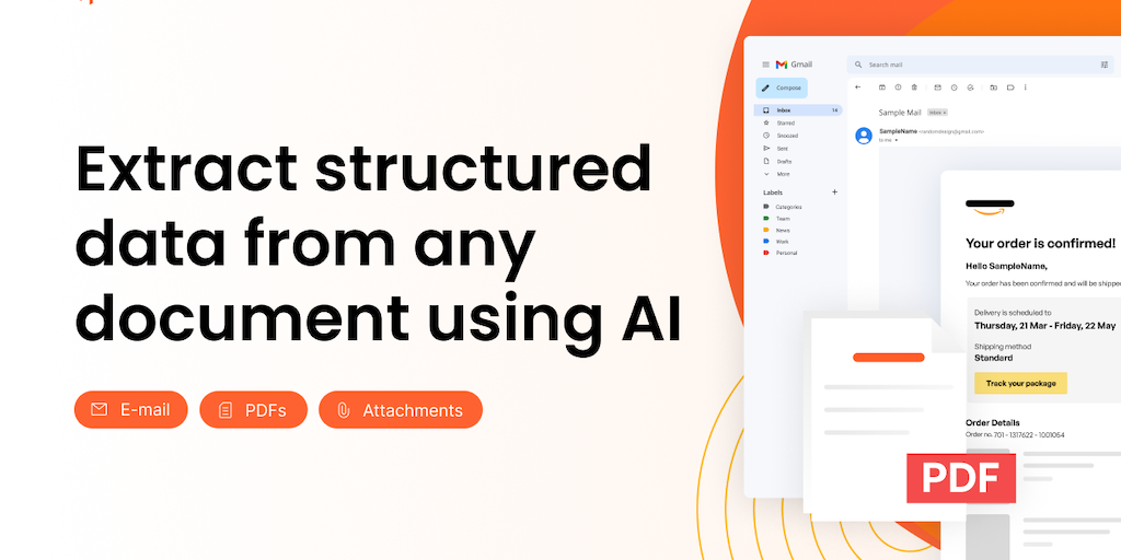 Parsio extracts structured data from emails, PDFs, and files (Excel, HTML, CSV, XML) using AI-powered parsers. The parsed data can be exported to Sheets, webhooks, and 6000+ apps, saving you hours of
