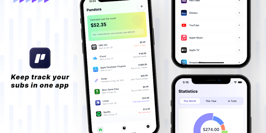 Pandora - Keep track your subscriptions in one app | Product Hunt