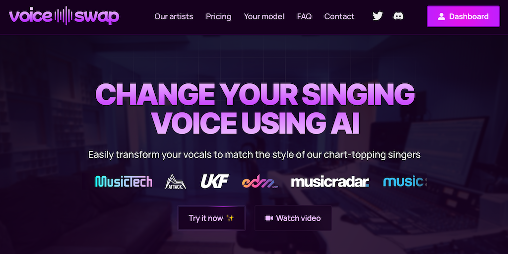 Swap your vocals with iconic singers using voice-swap.ai! Upload, select an artist, & download an acapella. Fair artist income splits, secure watermarking, & easy song licensing. AI that empowers arti
