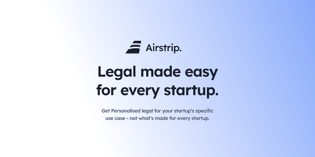 Airstrip is an AI-powered legal co-pilot for your startup. Airstrip provides compliant personalized legal documents for your use case, provides AI powered personalized legal assistance, and provides e