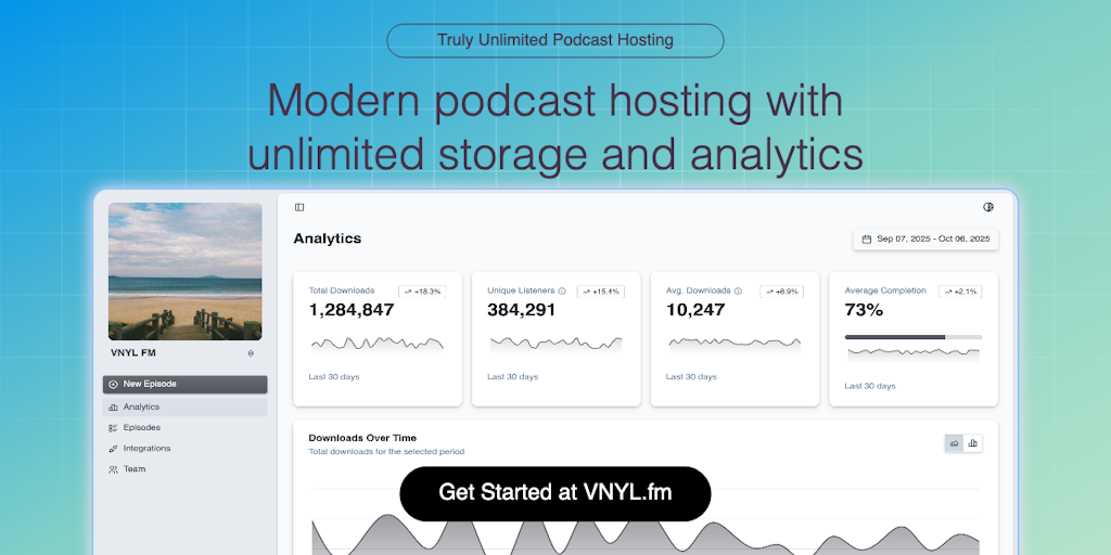 Modern podcast hosting with truly unlimited storage and downloads at a flat rate, no caps, no overage fees, no surprises. While competitors charge per download tier (forcing you to delete episodes or