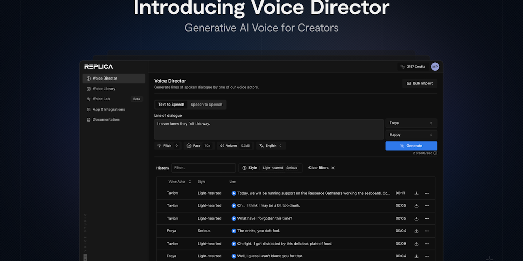 Voice Director by Replica Studios - Ethical voice AI and text to speech for creators | Product Hunt
