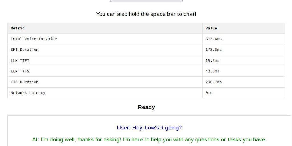 AI voice chat infrastructure that uses WebSockets. It can achieve voice-to-voice latency as low as 300ms (what GPT-4o does) without a unified voice codec. Everything runs on a single high-end consumer