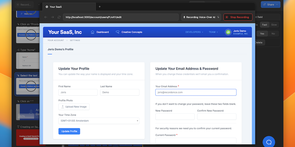 Record as quickly as you can demo your product. Our AI edits the video and removes any mistakes. No need for retakes; you’re done in minutes.