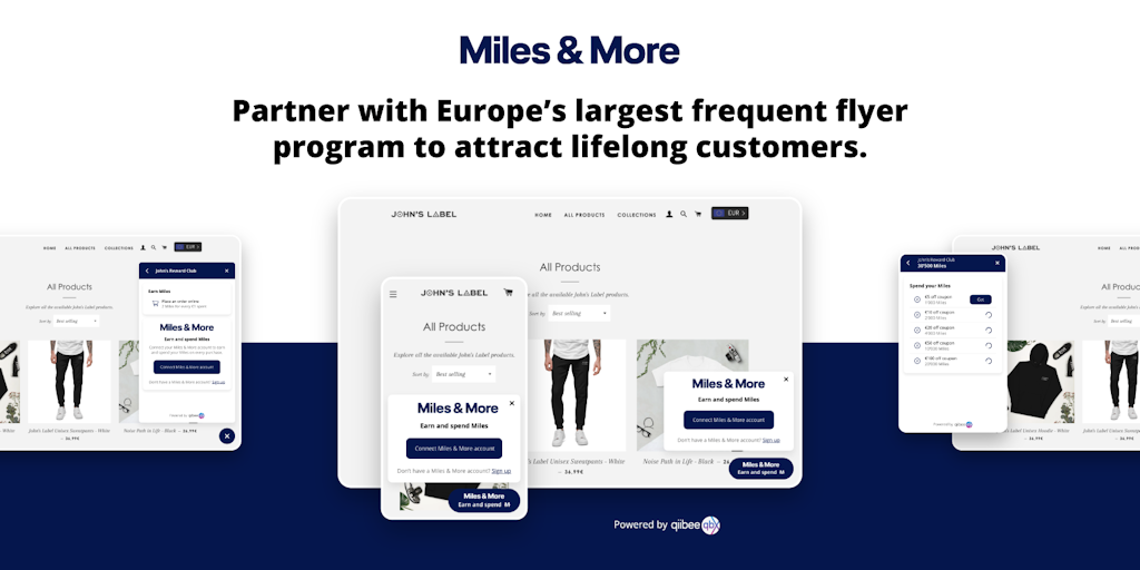 Effortlessly reward customers with Miles & More Miles and allow them to spend Miles within your Shopify store. Tap into an extensive network of 36m high-spending frequent flyer, drive customer acquisi