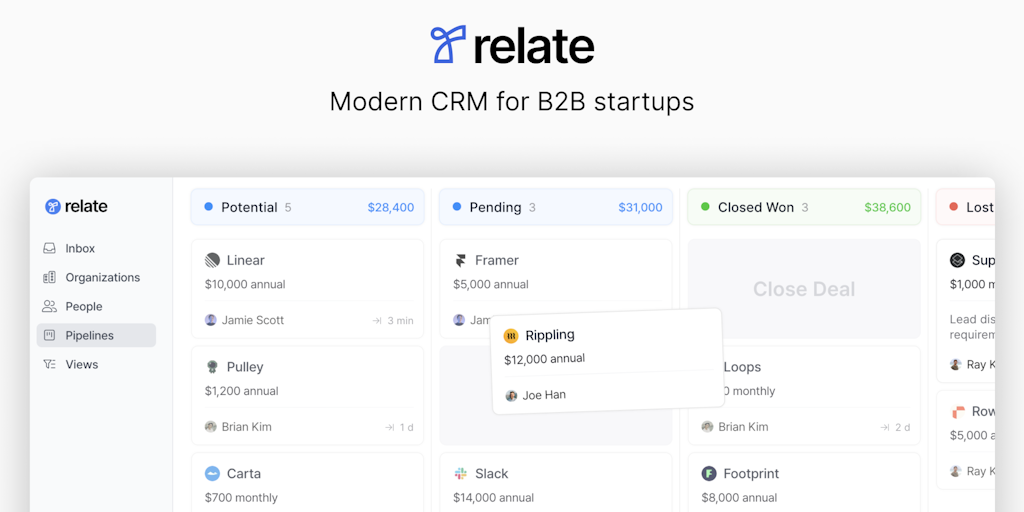 Relate - Modern sales CRM for B2B startups | Product Hunt