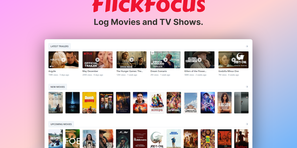 FlickFocus simplifies tracking movies and TV shows that you have watched or want to watch. Logging, lists, watchlists, and stats will help build your library. Follow your friends and see what they lik