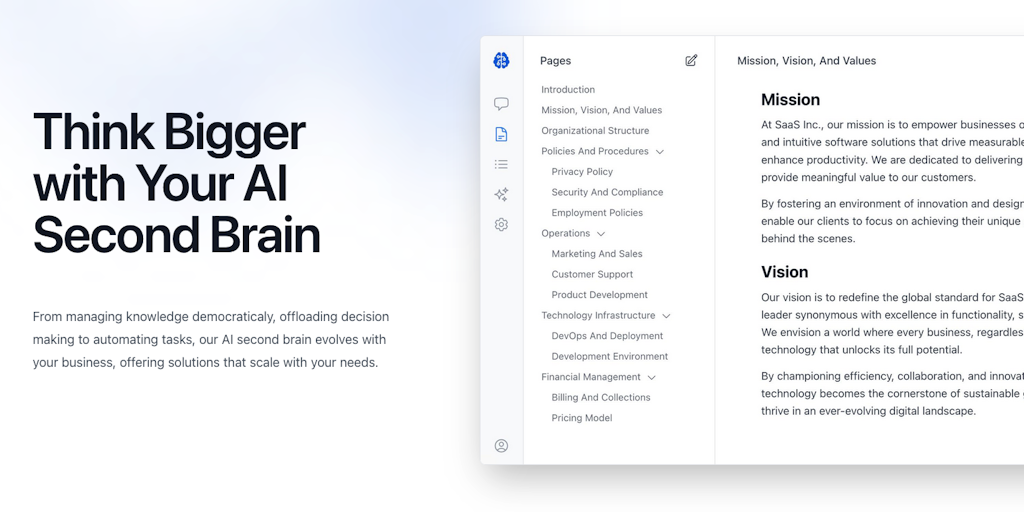 From managing knowledge democraticaly, offloading decision making to automating tasks, our AI second brain evolves with your business, offering solutions that scale with your needs.