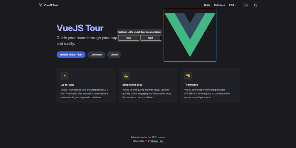 Vue.js Tour is a lightweight component for Vue.js apps, offering guided tours with customizable steps and events to enhance user onboarding and feature discovery.