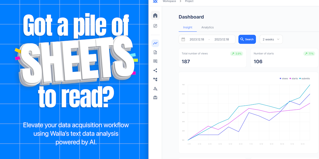 Got a pile of SHEETs to read? Stop reading text data one by one. Walla can classifies responses, analyzes emotion, and groups similar data together for you. Collect data with Walla forms, analyze and
