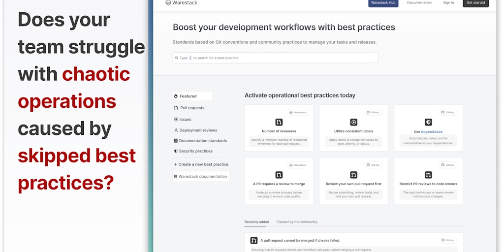 Create custom release protection in plain English for your team’s code changes. Warestack traces events like PRs, issues, and deployments, detecting violations in workflow operations, and instantly fl