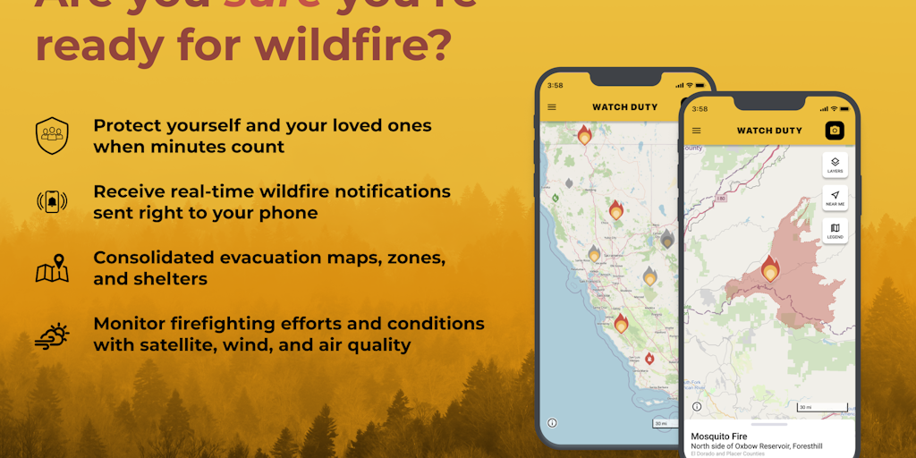 Watch Duty, a 501(c)(3) nonprofit, alerts you of nearby wildfires and firefighting efforts in real-time.
