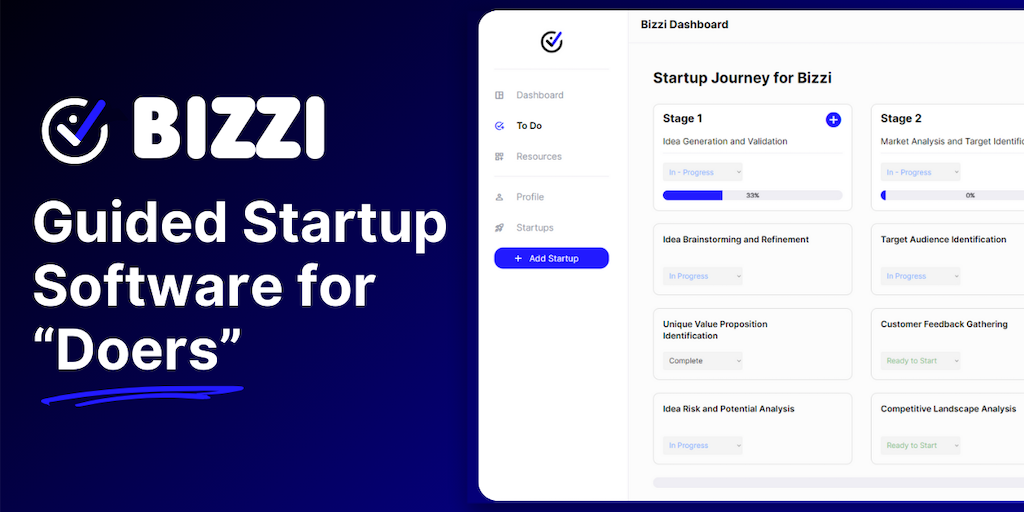 Bizzi provides a comprehensive software for SaaS startup founders looking for more direction and structure as they build. Streamline your journey step by step with project management, resources, and p