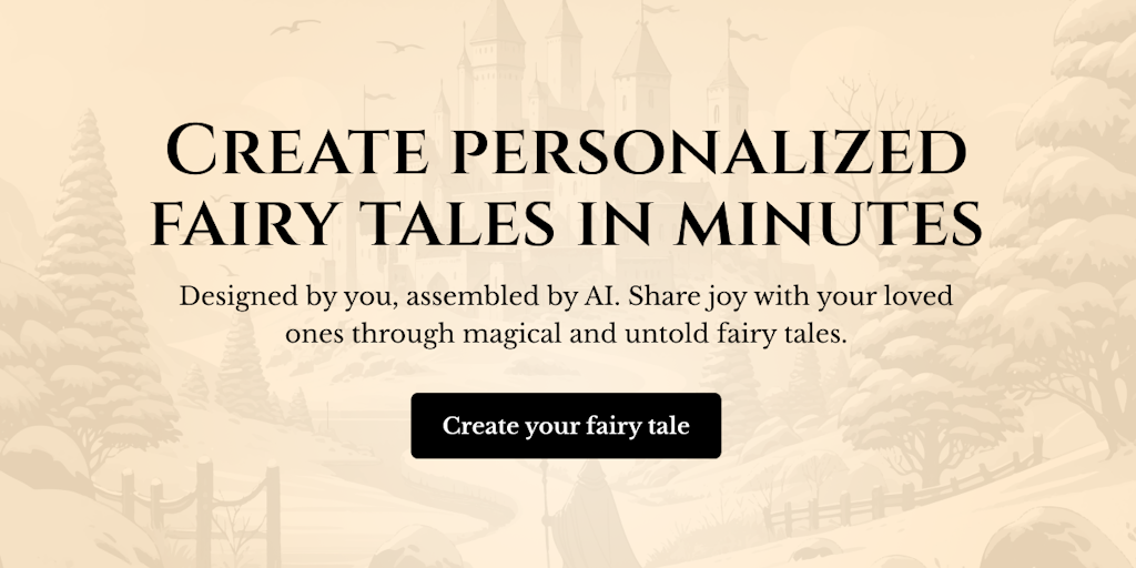 Create personalized fairy tales in minutes — designed by you and assembled by AI. First, add your character(s), specifying their traits and appearance. Second, select your genre. Now, wait for the AI