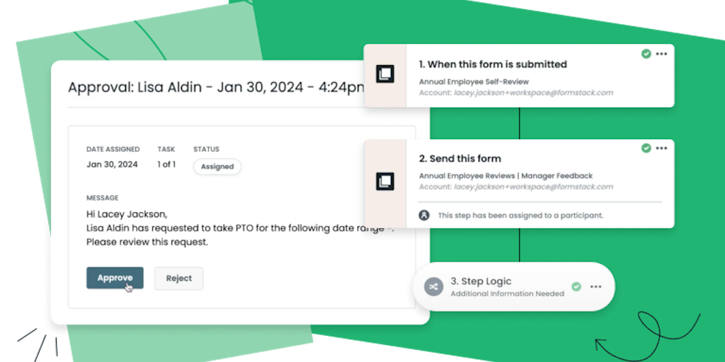 Formstack's Step Logic and Approvals enables dynamic workflow customization based on real-time data inputs, streamlining approvals, and enhancing collaboration, ideal for organizations seeking efficie