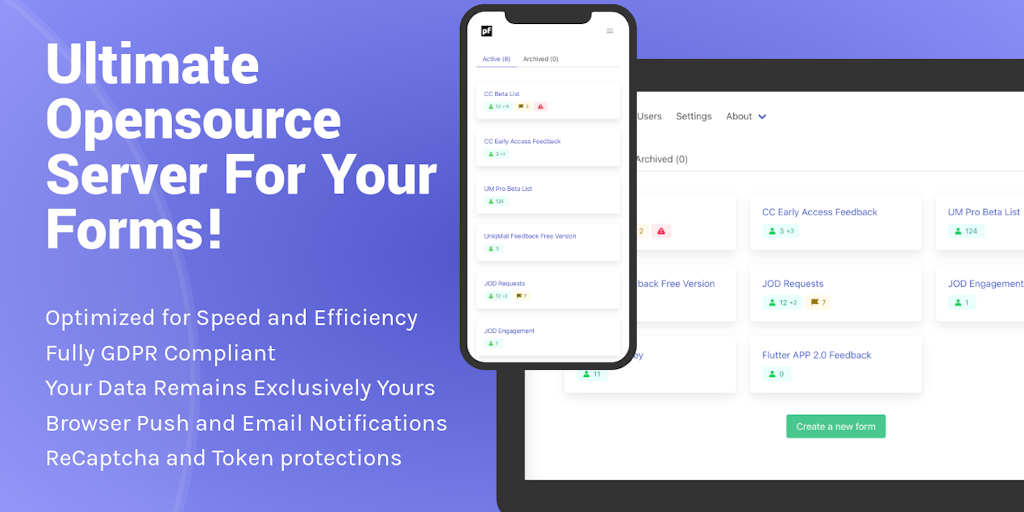 The ultimate open-source, lightweight form server. Designed for versatility, it runs on any platform, from budget hosting to free cloud services. Fully GDPR compliant, ensuring your data remains exclu
