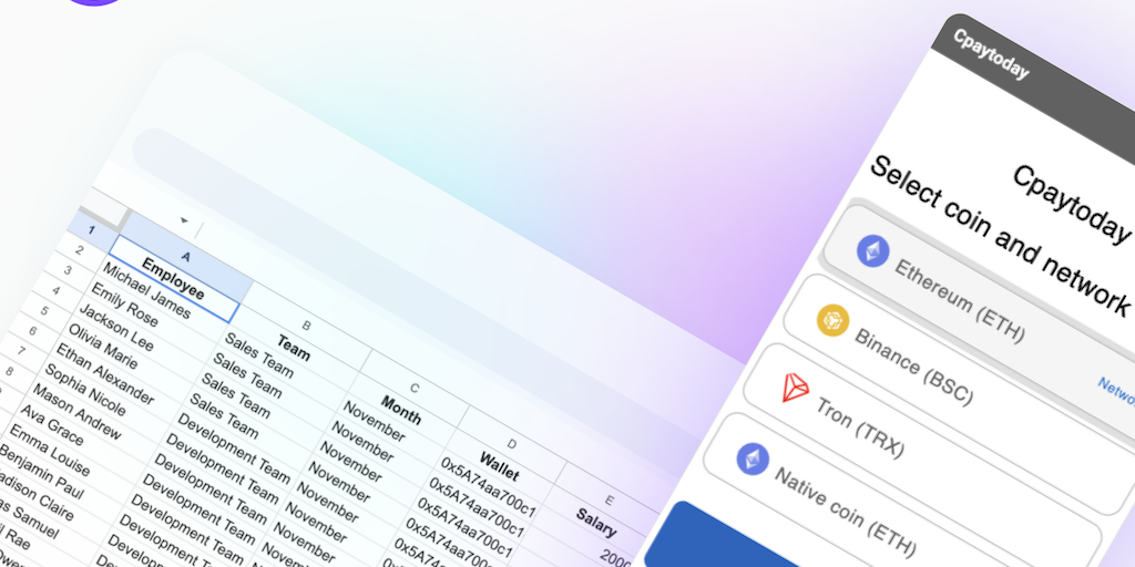 With Cpaytoday, effortlessly manage crypto payouts from Google Sheets™. Save time, cut GAS costs, and ensure security with our non-custodial solution. Join the revolution—transform your payout process