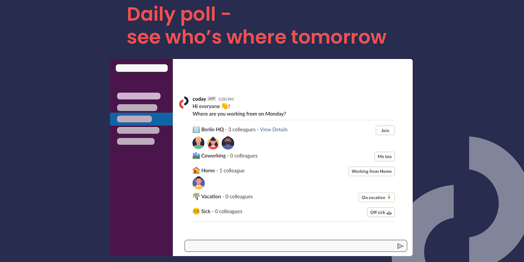 Coday - Simple way of coordinating office days with your colleagues | Product Hunt
