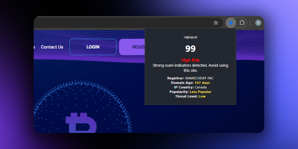 WebSafely offers real-time scam detection and website credibility checks. It helps you determine whether a website is legitimate or potentially a scam based on domain age, threat level, Popularity, IP