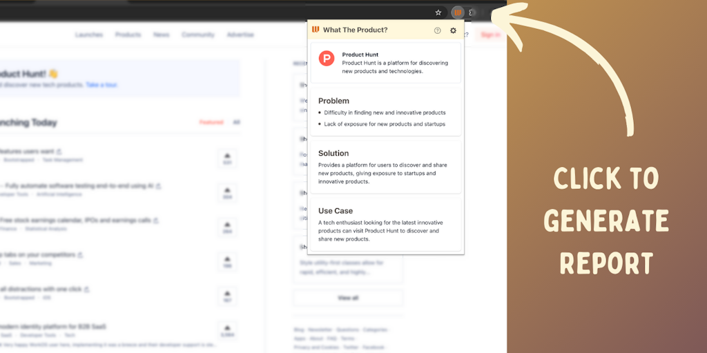 Navigating the world of new products and websites can be Lengthy and overwhelming, "What the Product" is a Chrome extension Simplify your product research with key insights directly in the browser. Wi