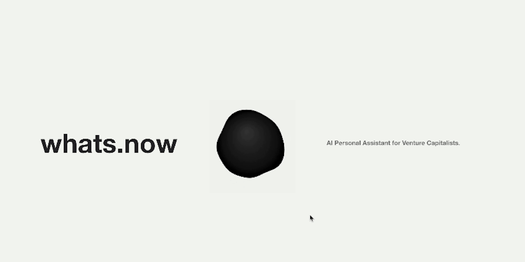 Whats.now is an AI personal assistant for Venture Capitalists (VCs) who need help managing their schedule and tasks. Whats.now lives in their inbox, ready to answer questions and complete delegated ta