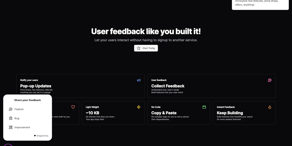 WidgetStrike - Collect user feedback without having to sign up | Product Hunt