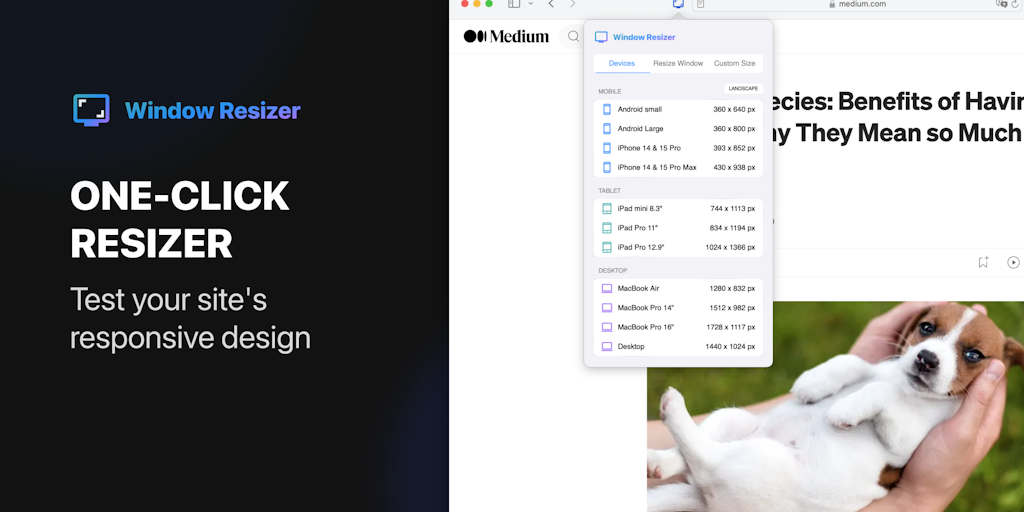 Window Resizer for Safari - Test responsive designs, split windows, customize sizes | Product Hunt