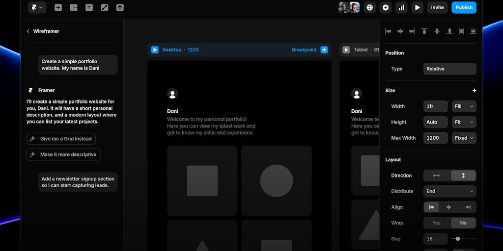 Wireframer turns a single prompt into a clean, responsive layout—focused on hierarchy and flow. It provides a solid foundation without locking you into a specific style.