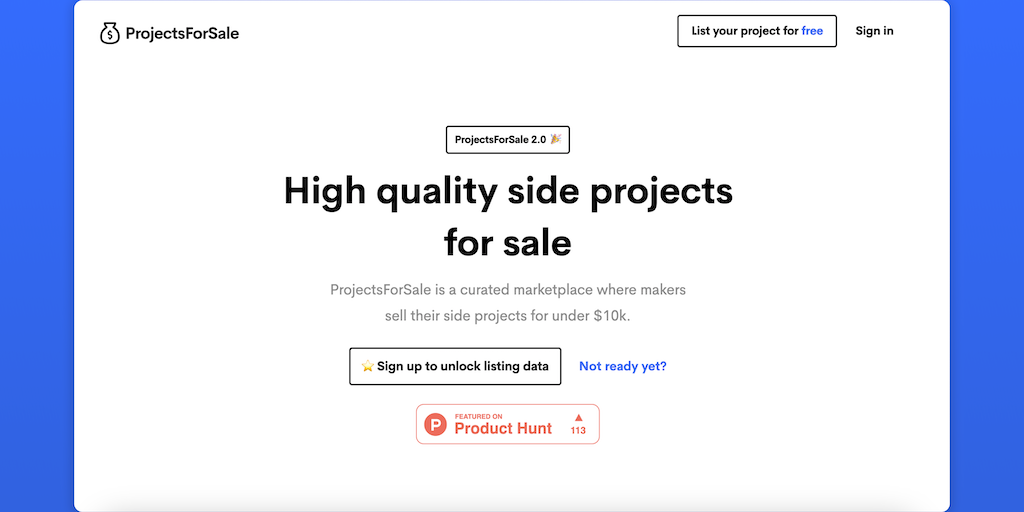 ProjectsForSale 2.0 - High quality side projects for sale (New & Improved) | Product Hunt