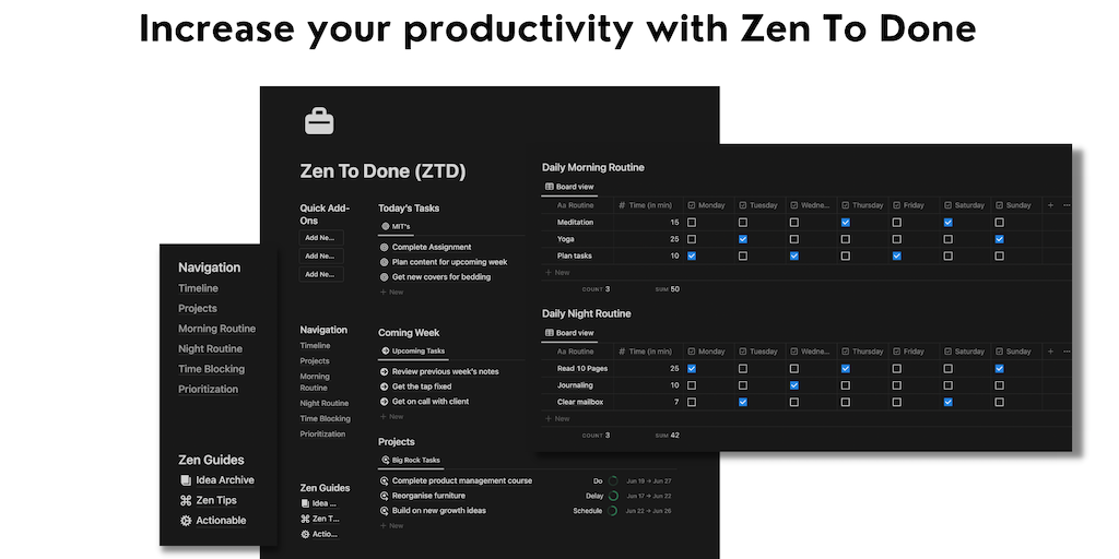 Zen To Done (ZTD) Dashboard - It's time to get productive, the ZEN way | Product Hunt
