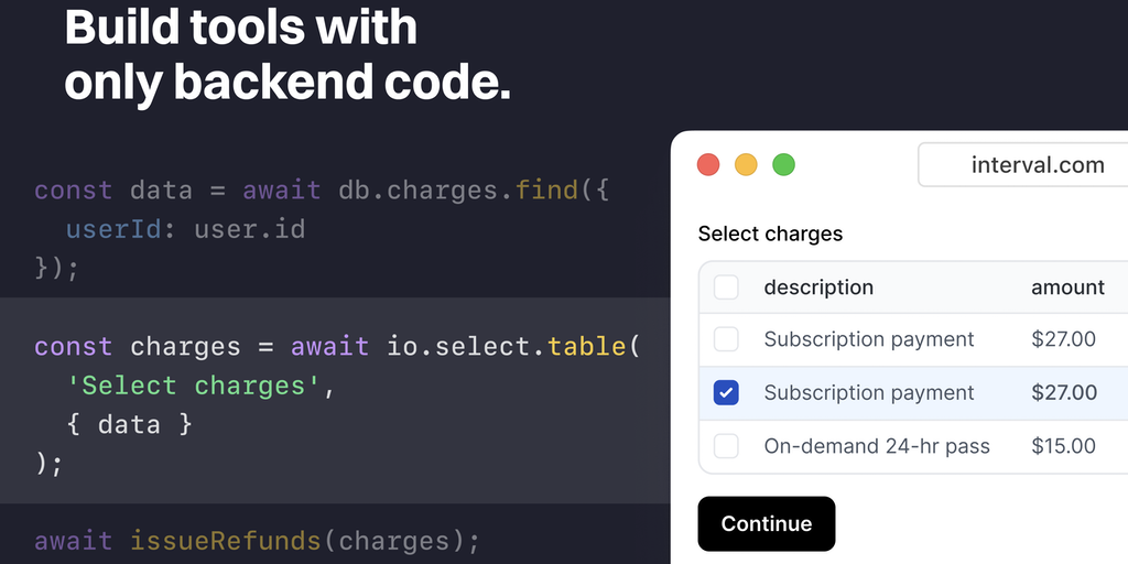 Interval - Build internal tools in Node.js with zero frontend code | Product Hunt